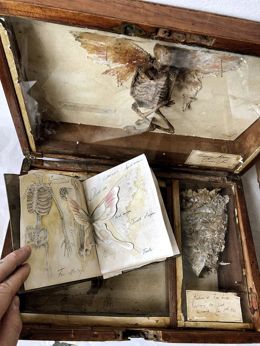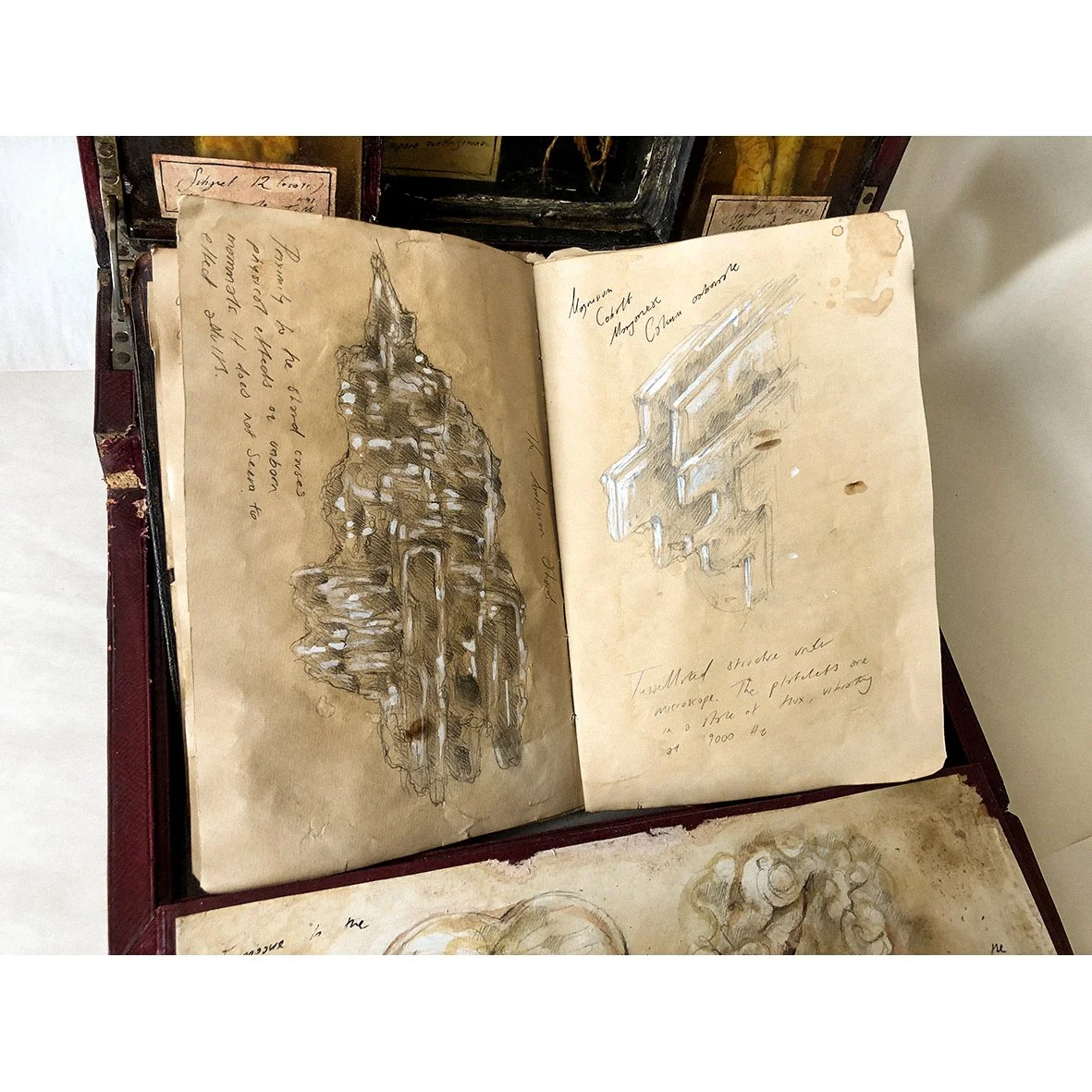 Tras más de quince años de desarrollo, Fringe Zoology: The Specimens of Thomas Merrylin es un libro de tapa dura de 21 x 29 cm, encuadernado en tela, con guardas de color marrón intenso y sobrecubierta. Contiene cientos de fotografías de especímenes y artefactos, junto con las explicaciones correspondientes. Adéntrese en el mito de la colección a través de mapas esotéricos, elementos arcanos de lo oculto, especies nunca antes vistas en la ciencia y, en esencia, la historia de un hombre destrozado.