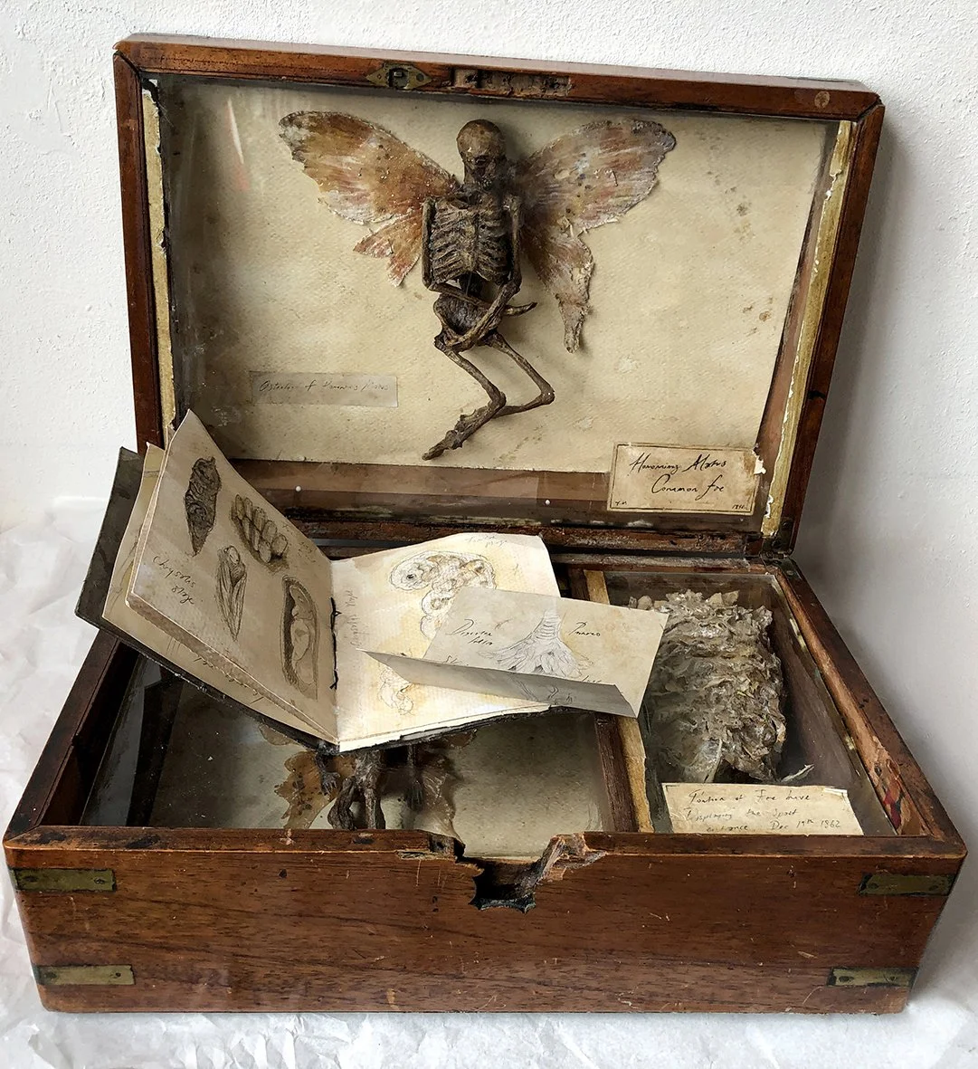 Fae have very mutable genes, and carry various genetic loads in their pheromones. It is suggested that genes are traded through pheromonal excretions, adding new genetic material to the individual. It is hypothesised that, due to the malleable nature of fae DNA, traits were exchanged between a species of insect (Homomimus arthropodus) and mammalian fae, causing a unique form of cooperative co-evolution. Larva non volucris, or Wingless fae, is possibly the closest example of what fae were before this relationship formed. True fae, and the insect-like Horst fae, have a strict caste system, and it is believed that pheromones play a role in activating the genes that trigger the growth of a third set of limbs in true fae, a trait found in all male Horst fae. Wingless fae still play a huge role within fae society, maintaining the queen and the hive itself. They will collect building materials for the hive, much like wasps. In medieval folklore, they were often described as ‘’borrowers” for their kleptomaniacal tendencies. Constant reference to people of diminutive stature fills the annals of many an occultist’s memoirs. Thomas encountered a number of fae hives, collecting ample specimens
