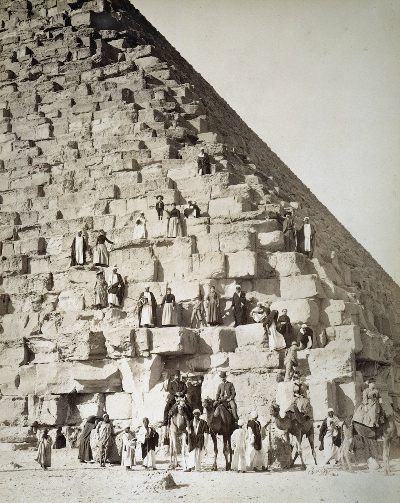 Un grupo de turistas es fotografiado junto a la Gran Pirámide de Gizeh cerca de El Cairo, Egipto, en 1895.The Granger Collection, New York / Cordon Press